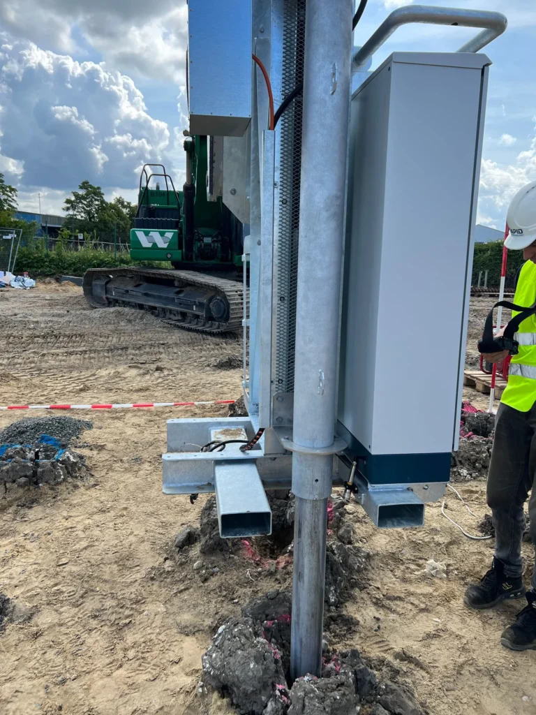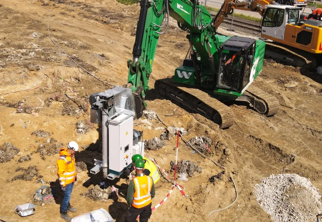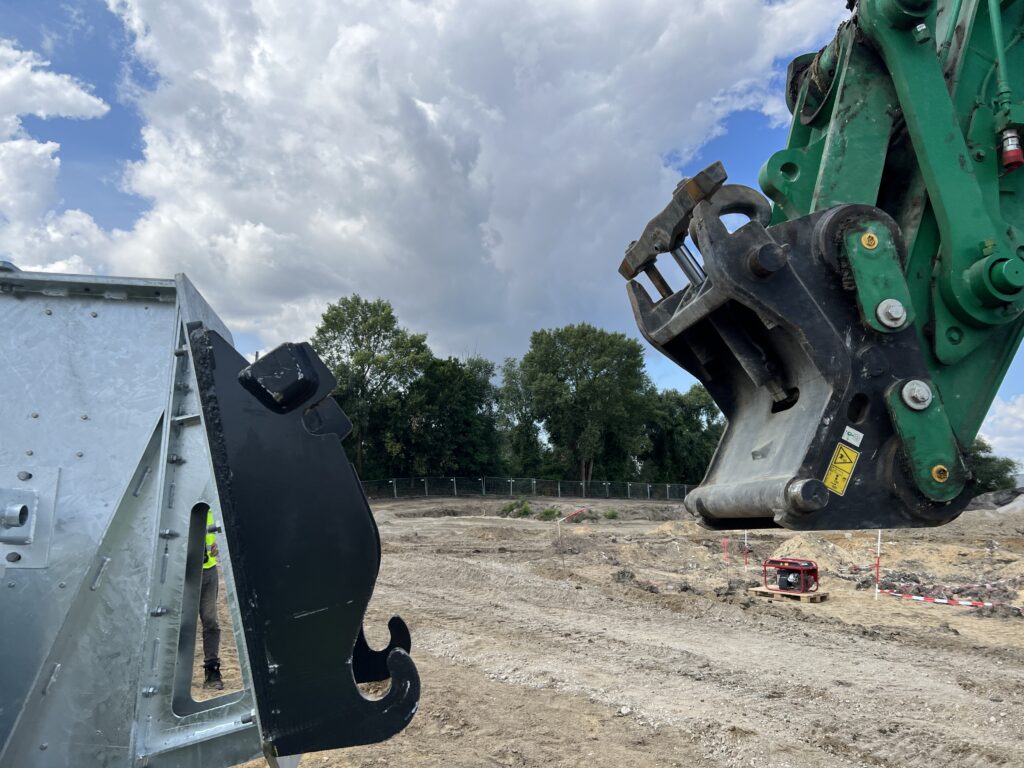 Pierwszym krokiem na placu budowy jest połączenie maszyny BOROPLAST® z koparką za pomocą szybkozłącza. Jedno kliknięcie wystarczy, by system był gotowy do pracy i mógł rozpocząć proces precyzyjnego wypełniania otworów wiertniczych.